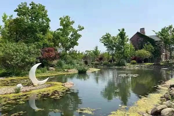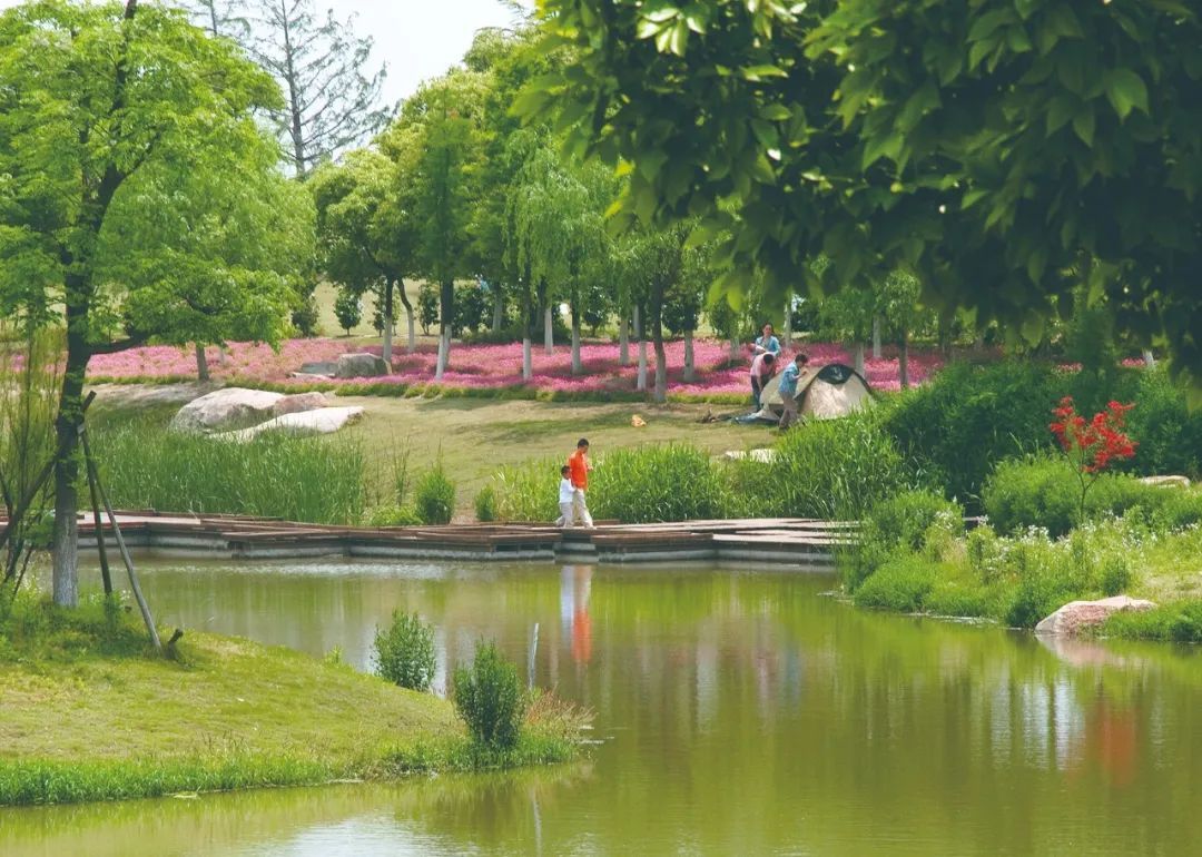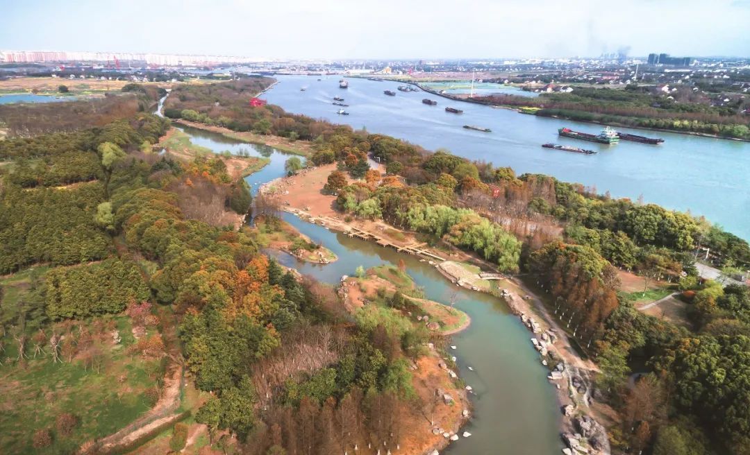 闵行区内的滨江绿地河道,江南水乡风景如画