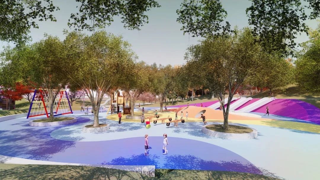 美国紫薇+夏堇+石竹大道。外环生态公园群夏季绿化效果图