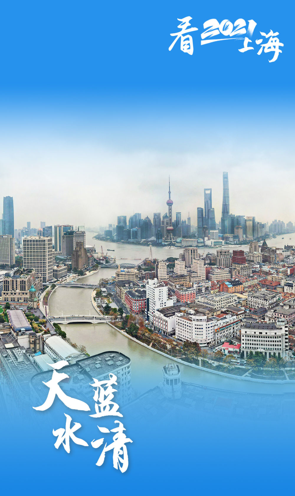 波光粼粼、芳草萋萋、天蓝水清。从空中俯瞰,陆续贯通的黄浦江45公里岸线和苏州河42公里岸线,宛若一串城市“项链 ”,在上海这座国际大都会中熠熠生辉。