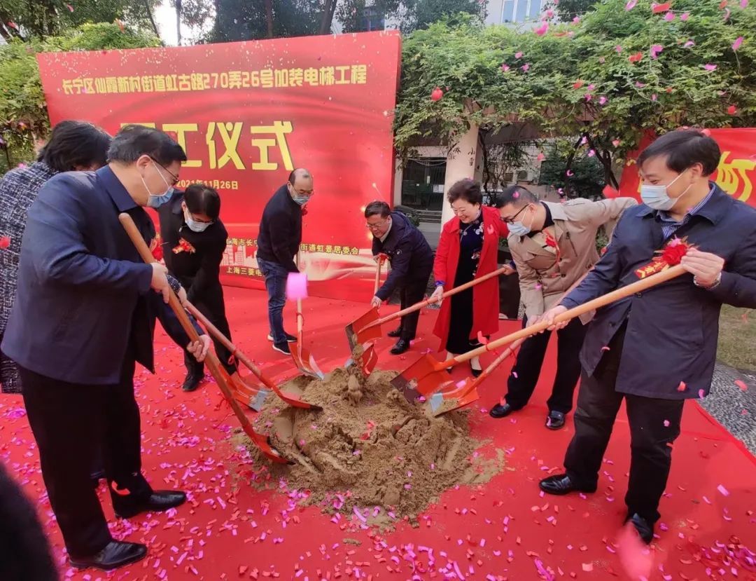 11月26日一大早,仙霞新村街道虹古路270弄26号加装电梯工程开工仪式在小区花园内举行。看到努力许久的加梯梦终于有了实质性进展,居民们脸上都洋溢着幸福的笑容。