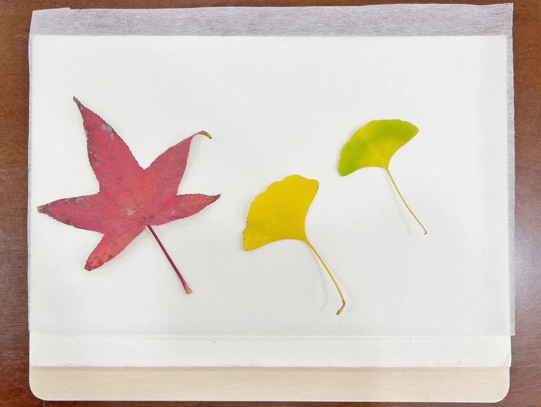为使落叶更长久的保留色彩不腐坏,可以使用压花板对其进行加工,吸收落叶中的水分使其干燥。
