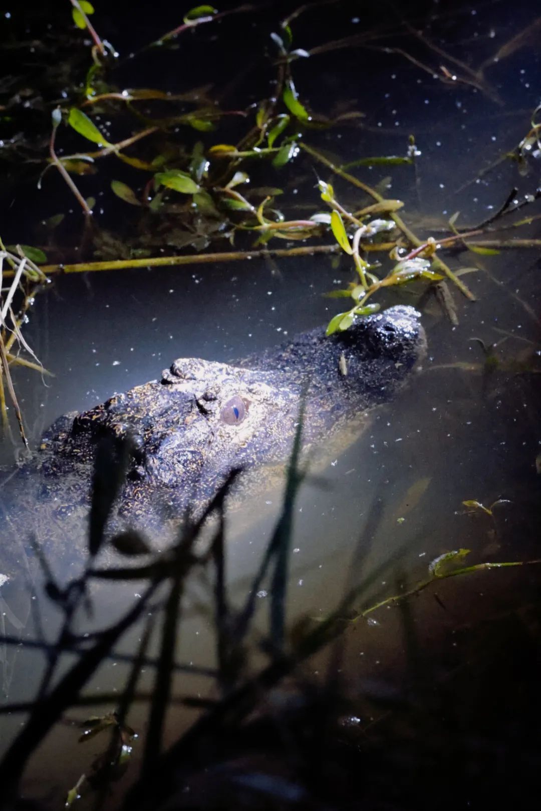 2007年,6条可爱的国家一级保护野生动物活化石扬子鳄在东滩湿地公园成功野放。十数年间,扬子鳄在东滩湿地公园生存繁衍,数量达30余条,已然成为湿地的明星物种。依托扬子鳄种群恢复工作的成果,围绕扬子鳄的科普研学活动也随之蓬勃开展。“夜寻扬子鳄”作为科普研学系列活动中的翘楚,吸引了大批游客夜探湿地,在讲解员的带领下走入蛙鸣虫语的湿地一路学习扬子鳄的各类知识,不仅能让大家全面了解扬子鳄的习性、食性、生存状态等,还可以近距离观察观测这种在地球上生存了数千万年的珍稀野生动物,其不仅教育意义深刻,还能唤起更多人对这一物种的关注和保护。