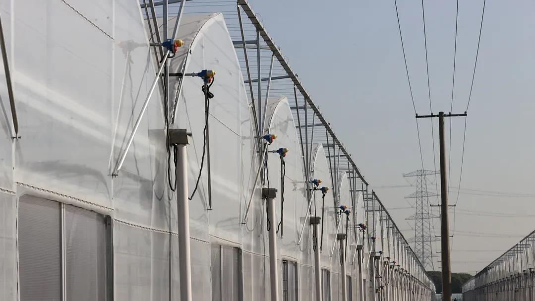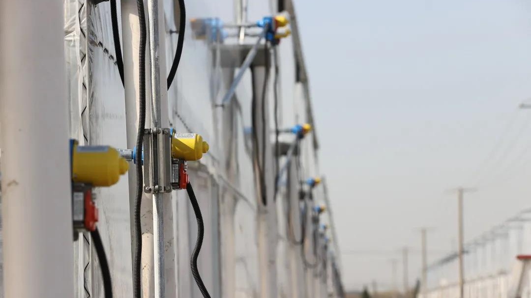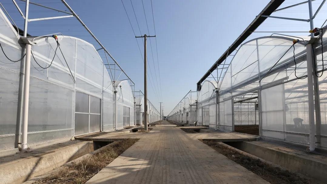“传统的大棚如遇大风天气容易被吹走,而新搭建的连栋大棚采用双层钢架结构,更为牢固。”现场工作人员介绍,“冬天覆盖上这个银色的保温膜,可以保证蔬菜幼苗不受低温冻害。到了夏天,顶部黑色的遮阳网展开,还能起到隔热降温作用,防止蔬菜高温腐烂。另外,棚内采用水肥一体的施肥设备,通过循环滴灌系统实时控制直接供给,能让蔬菜一年四季都可以在适宜的环境中生长。”