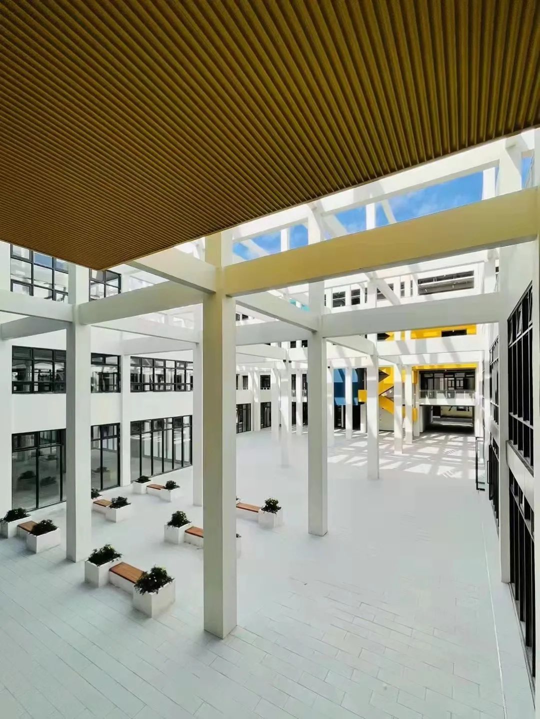 据了解,在改造中,拆除了厂房四周所有围墙,把界面全部打开,取而代之的是露天广场和绿廊步道,从而将内部空间开放给周边的居民、高校、办公客群,与周边的生活空间彻底连通。