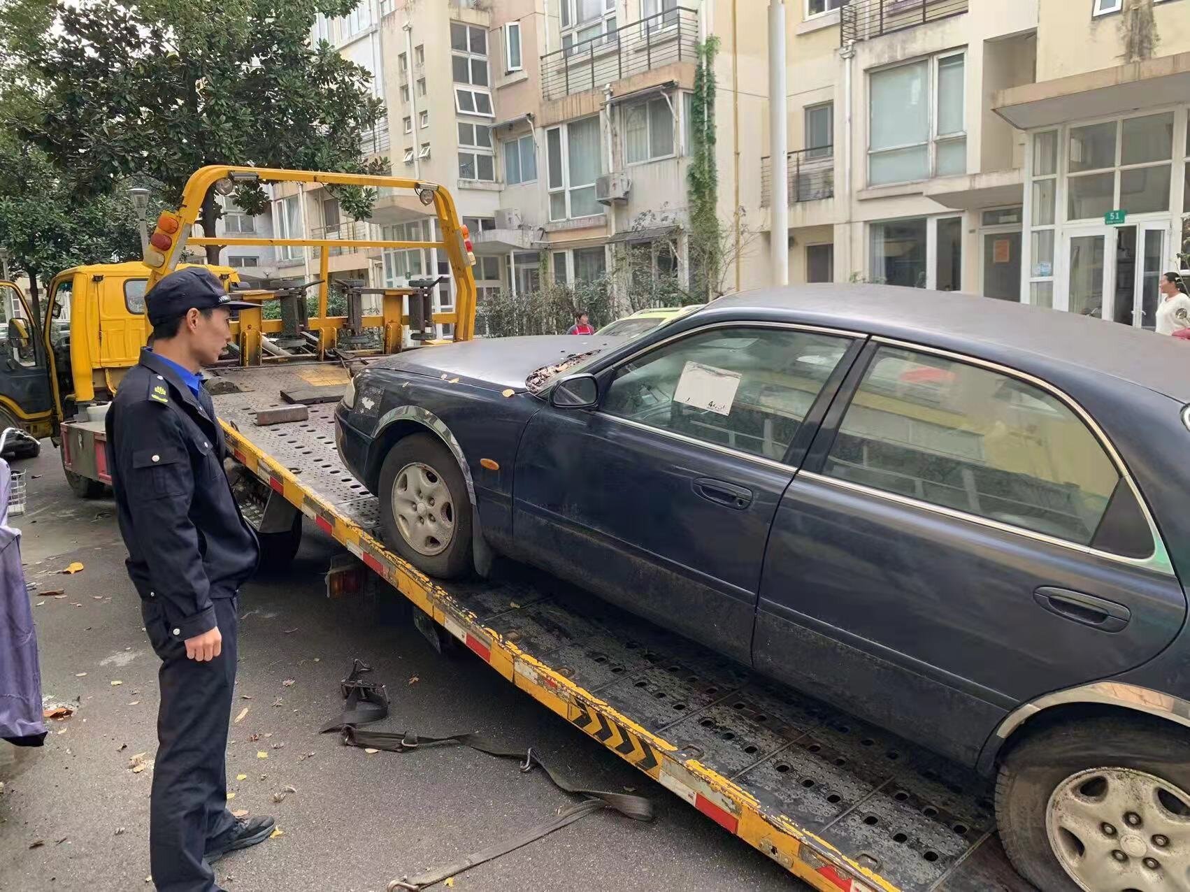 飘扬的尘土、瘪气的轮胎、破败的车身……车辆被“遗弃”后随意停放在停车场、小区、马路边,这样的“僵尸车”长期占用公共场所,影响城市和社区环境。近日,新桥镇综合行政执法队开展“城管进社区”工作,对丽水华庭小区内的“僵尸车”进行专项清理整治,拖离六辆无主车辆。