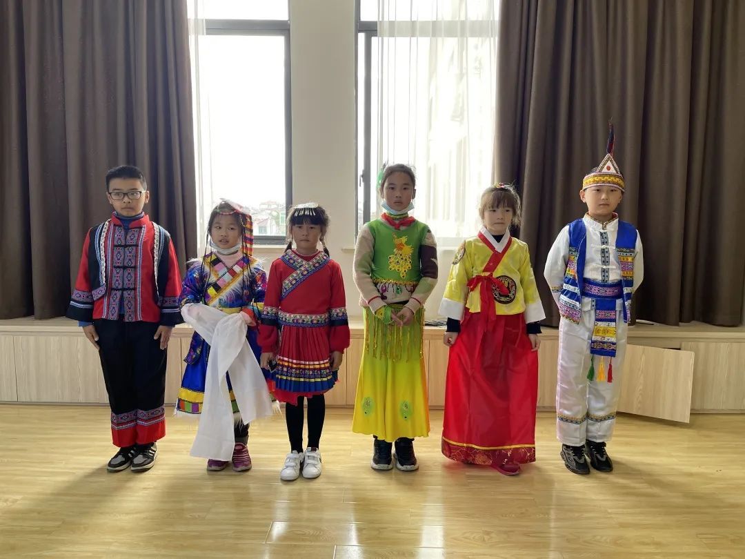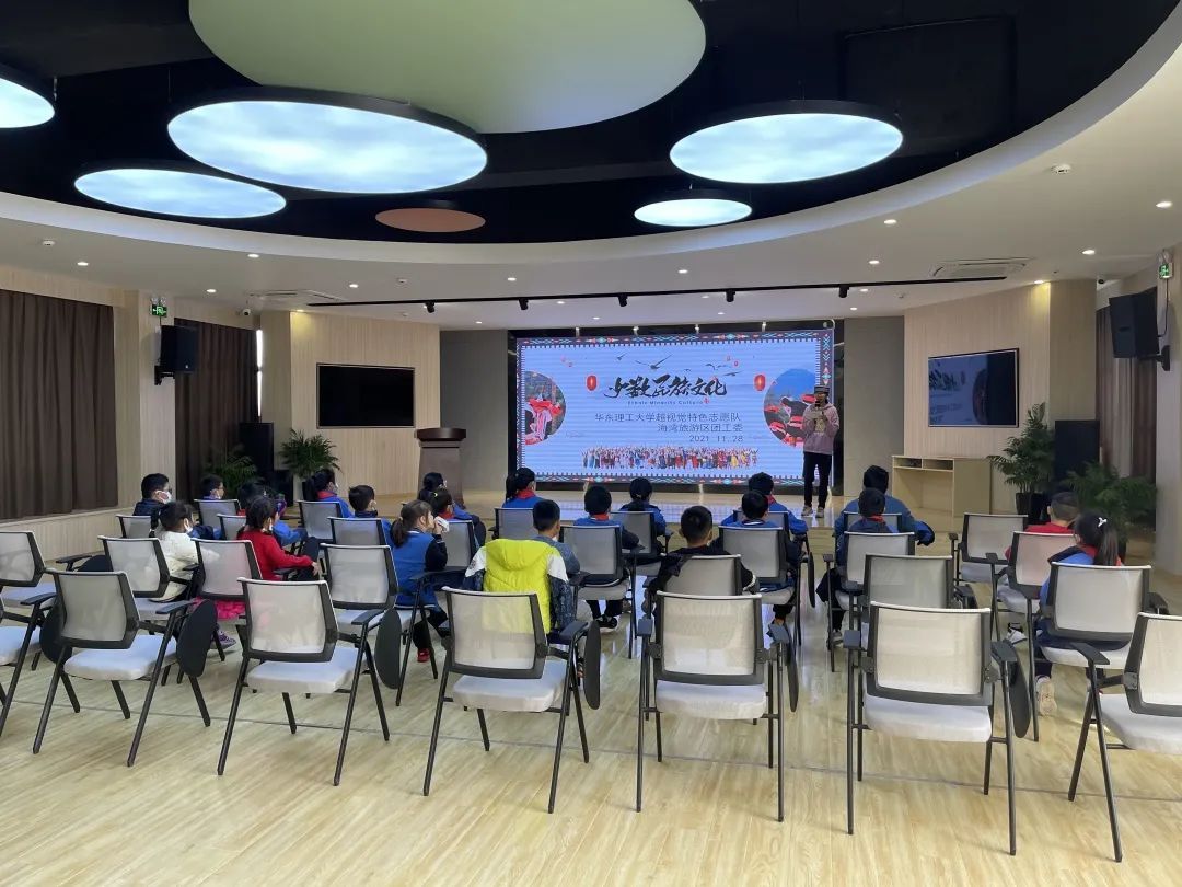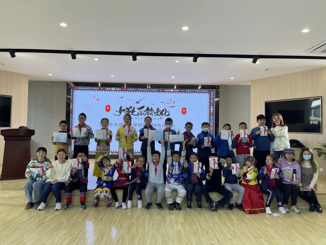 在华东理工大学超视觉公益社志愿者的带领下,少先队员们通过知识竞猜、民族小游戏、民族服饰试穿、合唱《爱我中华》等环节,“零距离”感受民族文化的魅力。
