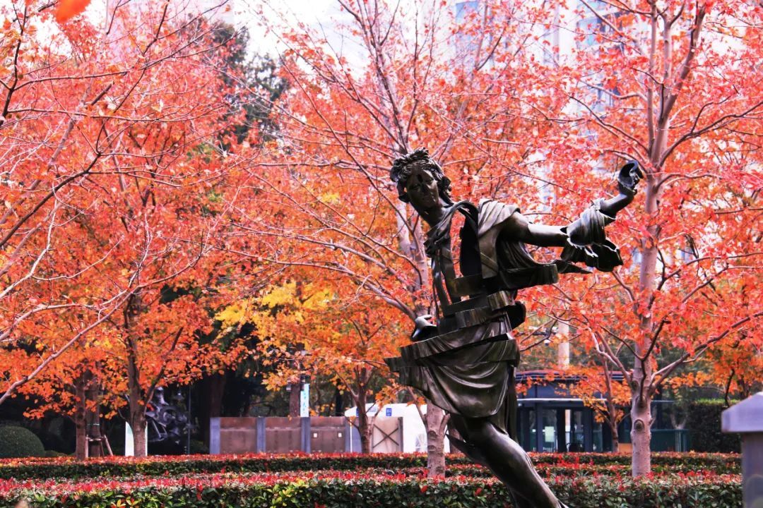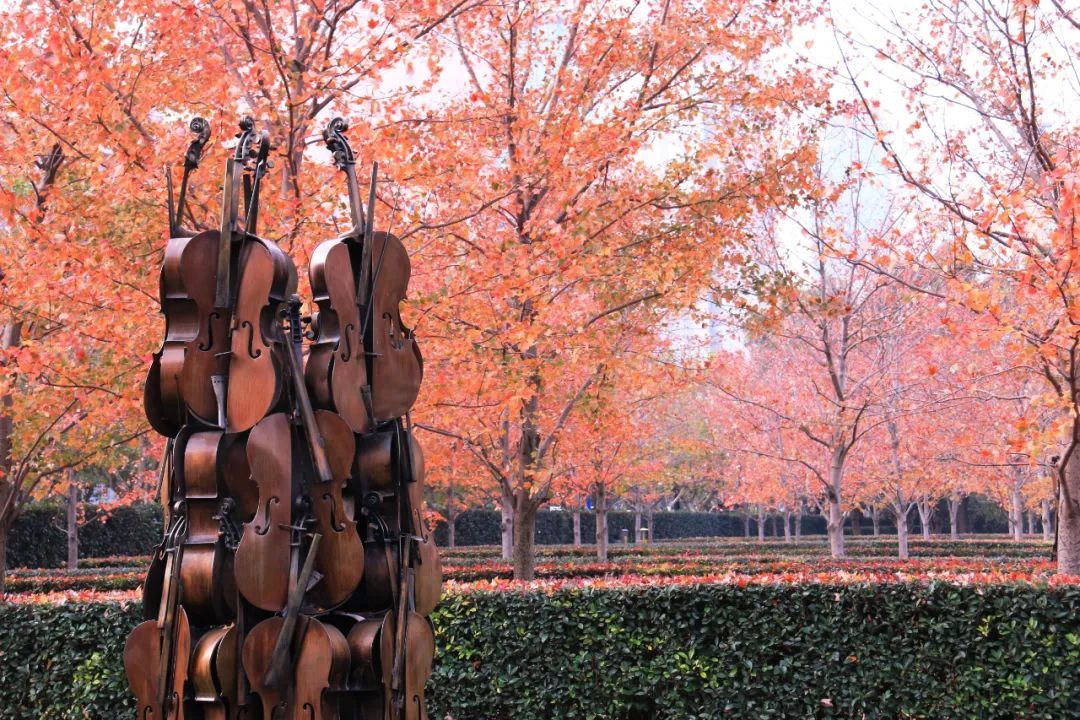 深秋初冬,除了金黄色的银杏树唱主角之外,浓烈的红色也在悄悄露头。在静安雕塑公园内,种植有成片的红花槭,为萧瑟的秋冬点缀明艳的色彩。