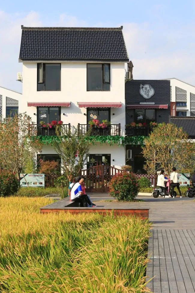 利用原有的农用烘干机房,在南侧保留了原来稻谷烘干及碾米的功能,给游客特别是生活在城市里的孩子们体验农耕文化。以“蓝印花布”、“草头塌饼”、“向阳米糕”等一些列具有文化特色产品,开展具有“向阳特色的农旅”文化体验。周围又建造了几个钢结构模块化房屋,稍加装饰后就成了精致温馨的咖啡屋,到村里来的游客,就可以在此小憩闲聊。无人驾驶、智能AI、创客中心等新颖新潮的时代元素,在向阳村也得到了融合。