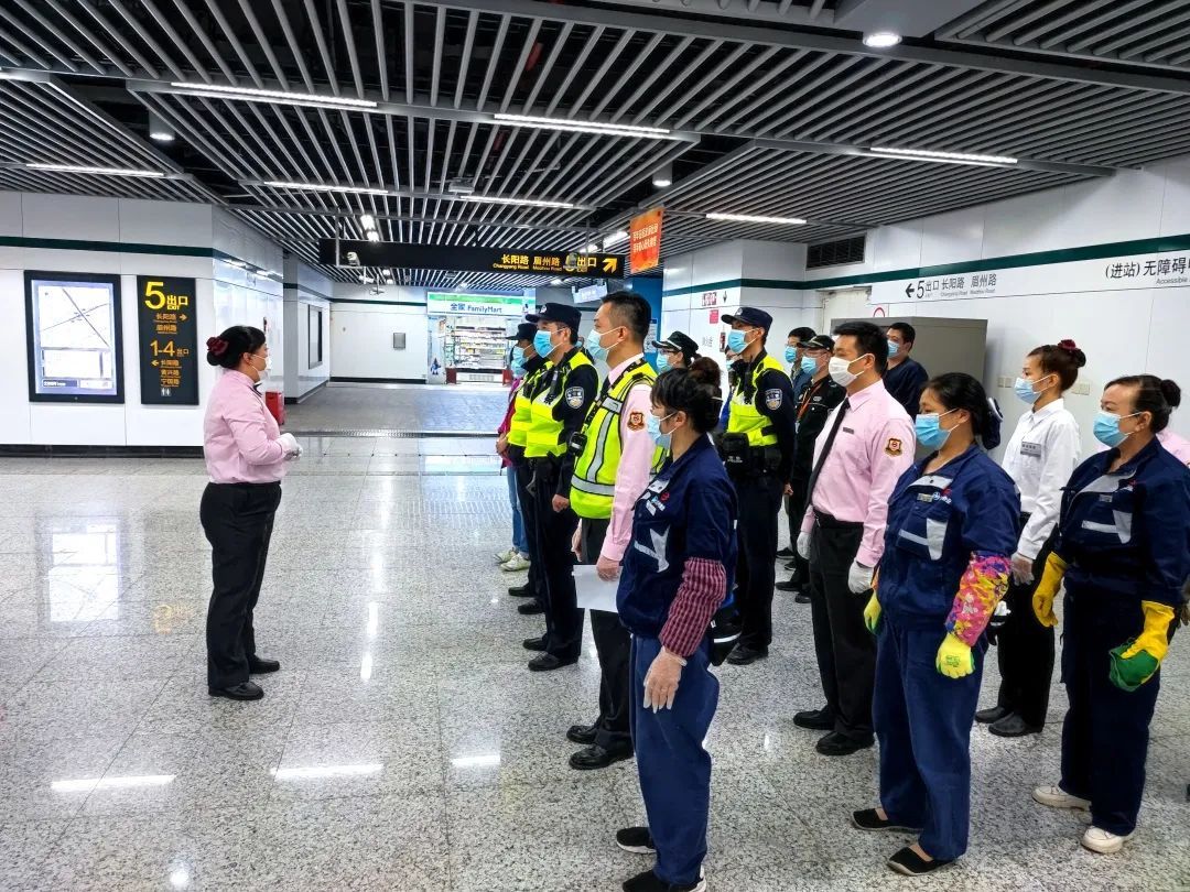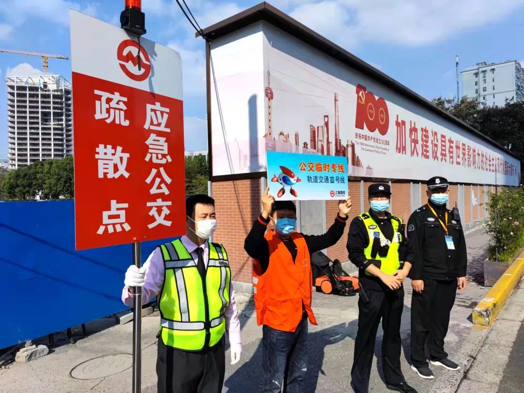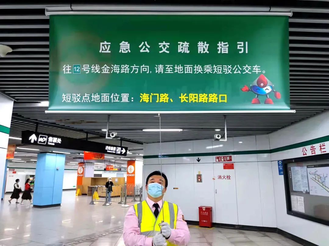 参演人员迅速响应,携带引导工具及时到达预案指定点位进行客流疏散、引导;派出所民警接报后到达车站出入口引导客流,曲阳路街道所有增援人员穿着志愿者背心,在15分钟内到达车站各出入口及公交短驳点等指定点位进行疏导客流。