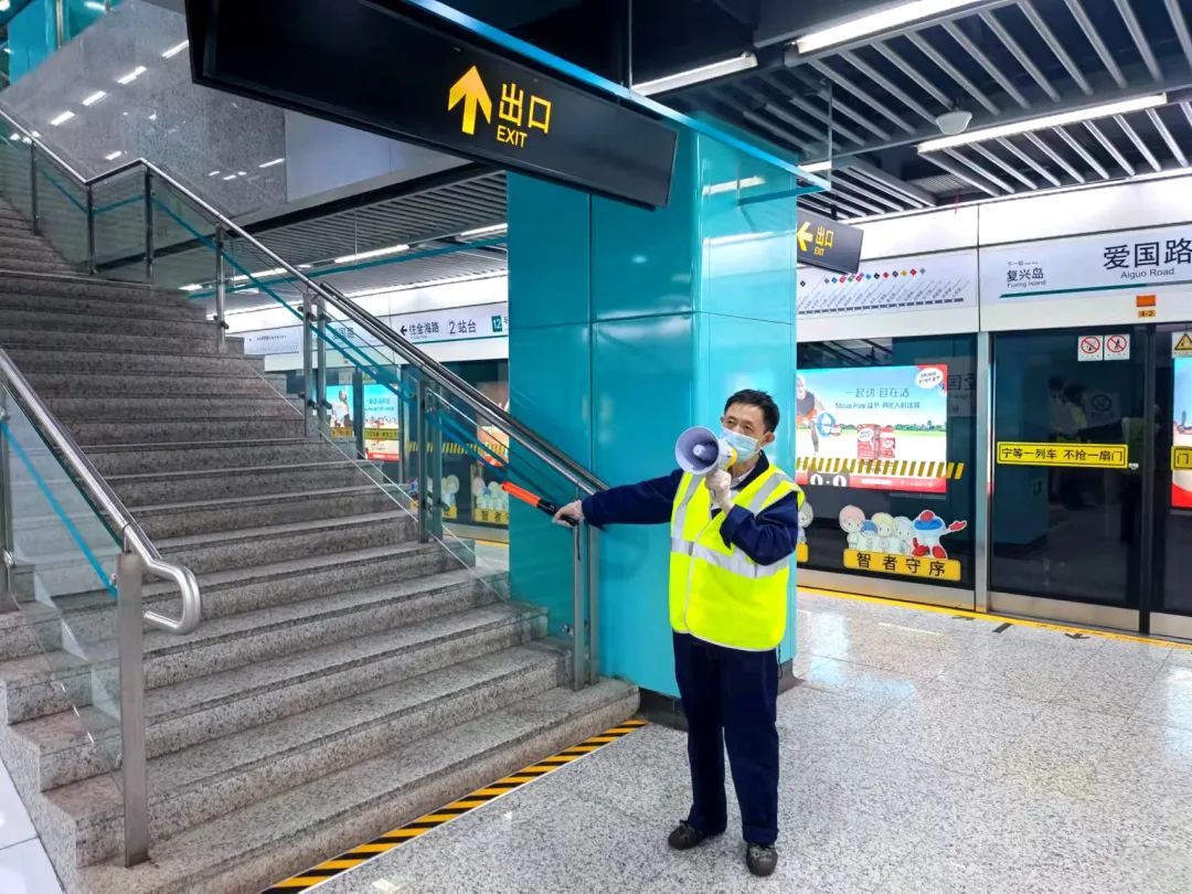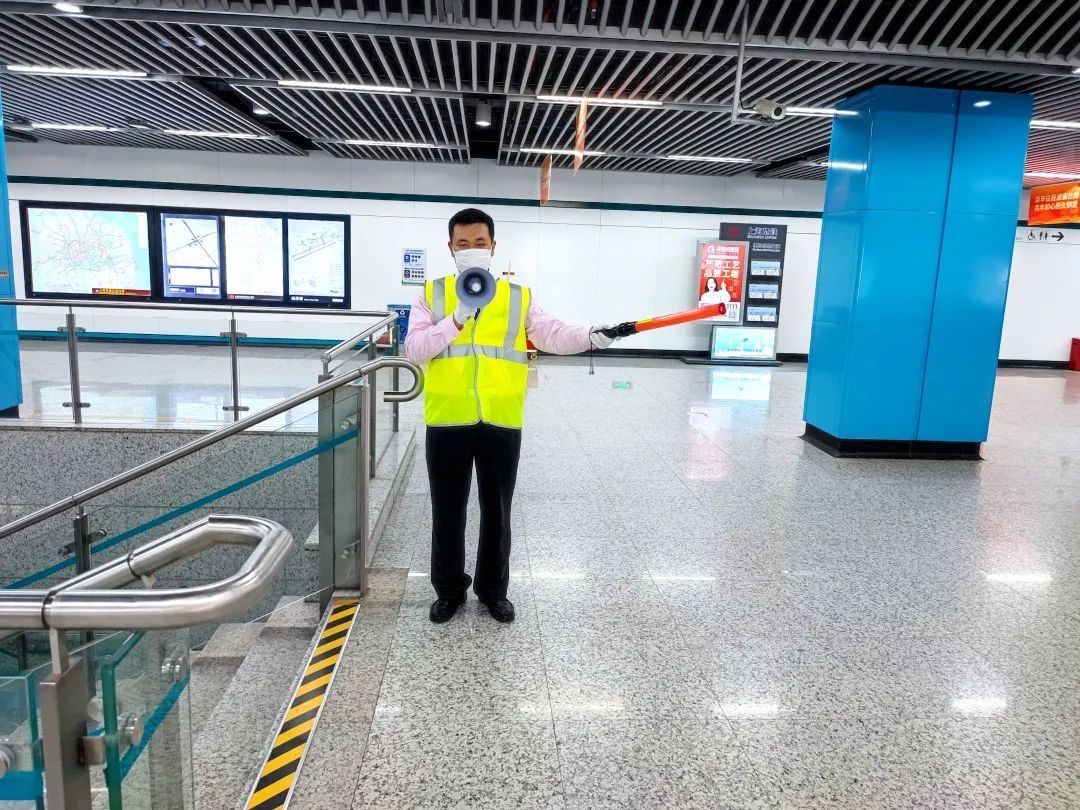 各站值班站长负责现场指挥工作,协调联动。车站员工各司其职,在站台、站厅、自动扶梯口及站外公交车站利用指引牌、引导棒等引导乘客有序疏散。