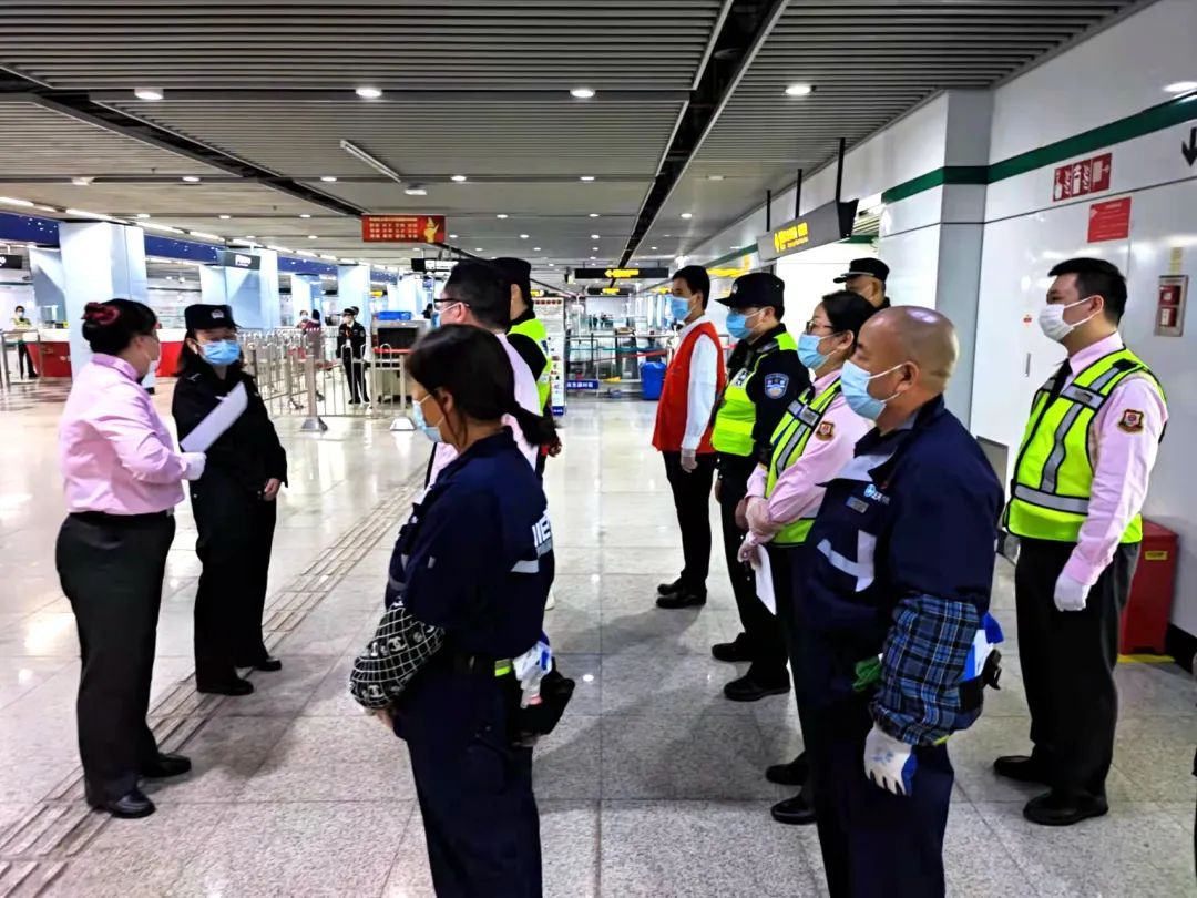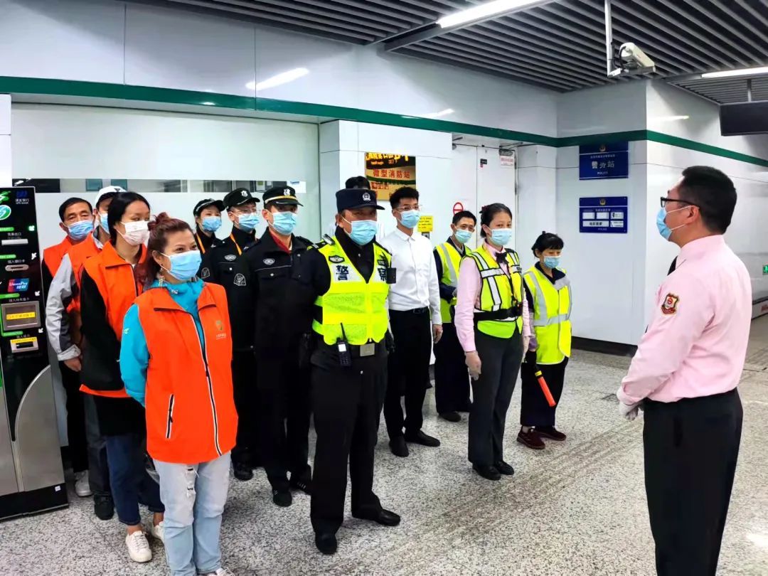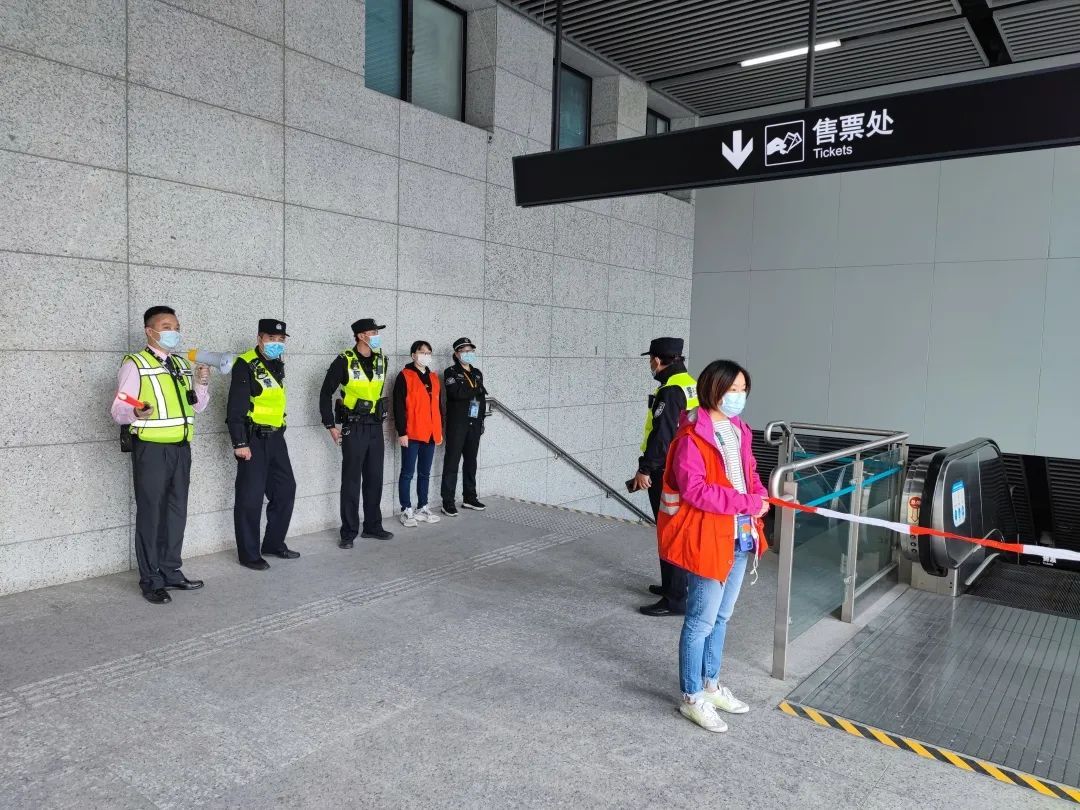 街道参演人员按照预案要求快速响应、及时就位,配合车站做好客流引导工作。