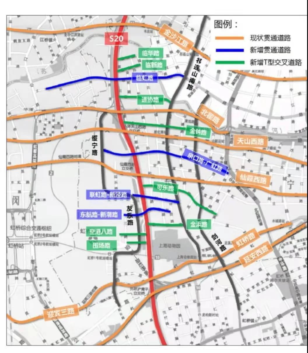 预计明年6月即将开工的上海市“十四五”重大工程--外环西段抬升工程又将送来通行红利。长宁将借此同步推进配套路网建设,在现状6条过外环东西向通道的基础上,规划新增临虹路等4条东西向贯通道路;新增临华路等8条接外环辅道的T型交叉道路;与绥宁路-联虹路-友乐路、外环地面辅道、淞虹路、剑河路等4条南北向道路共形成“四纵十八横”,以服务虹桥国际开放枢纽、共同提升区域交通能级的路网格局。