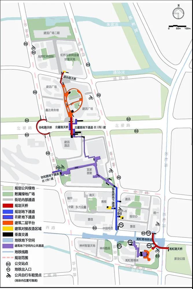 整个临空园区的慢行交通也将更加便利:包括上海宜家荟聚购物中心同步推进的3个地下通道建设在内,长宁正在规划建设临空经济园区“七下八上”的立体勾连慢行交通网,规划包括4座景观步行桥、4座人行过街天桥、7处地下人行通道,共分三期实施。