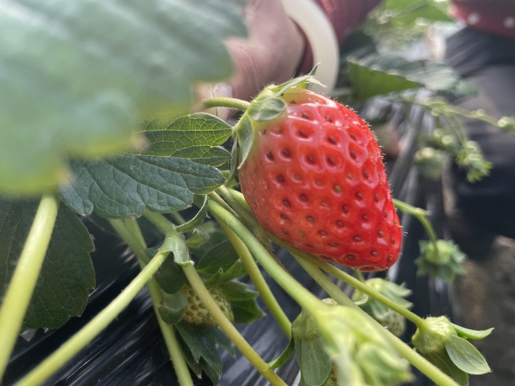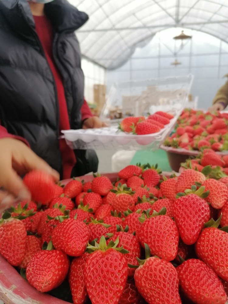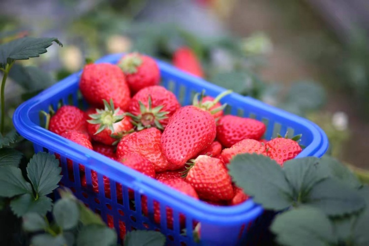 而在管理方面,周国朝也有一套“秘诀”。他介绍,在草莓种植的前中后三个阶段,需要施不同种类的肥料。“前期施高磷肥,中期施富含氮磷钾的平衡肥,到了后期,则需要施高钾肥。虽然成本高,但高钾肥能让草莓又甜又亮,口感更好。”