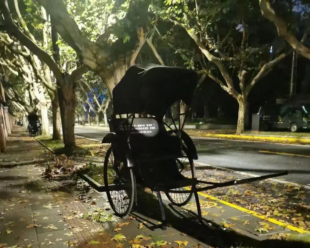 新华路上可供休息的“黄包车”座椅