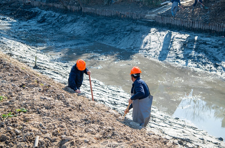 在位于漕泾镇蒋庄村的小庙港支河可以看到,河水已基本被抽干。河床上,多名施工人员穿着雨衣裤正在进行河道清淤。村民告诉记者,原先河道两岸杂草丛生,很是脏乱。现在,她没事儿就会过来看看施工进度,盼着河道环境早日实现大变样。