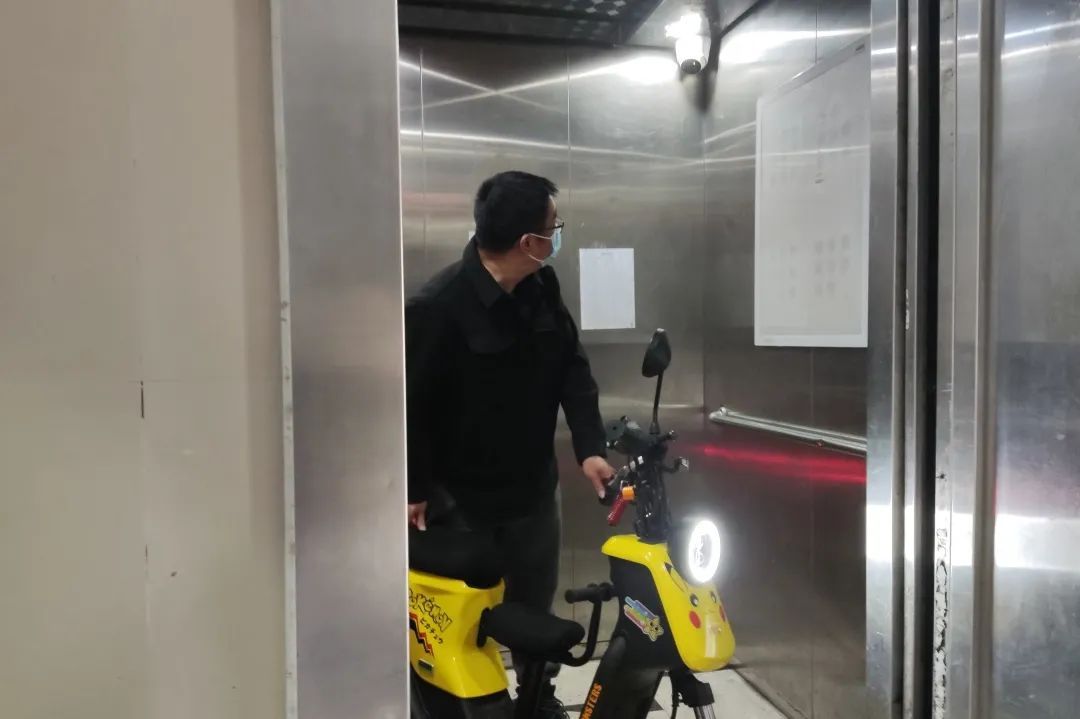 记者注意到,一旦居民将电瓶车推入电梯,便会传来这样的语音提示,电梯门也无法关闭,同时摄像头还会持续发出闪光。