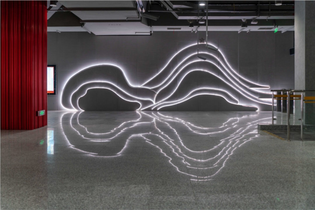 结合周边人文环境及历史底蕴,车站内设置了公共艺术站名墙,使功能与美感相辅相成,在满足交通基本功能的基础上,增强了整线车站亮点空间的视觉美感,让城市特色文化融入城市地下空间,凝练、打造、传递人文地铁理念。同时,选择预制艺术水泥板为材料与车站简约装饰达到异曲同工之妙。