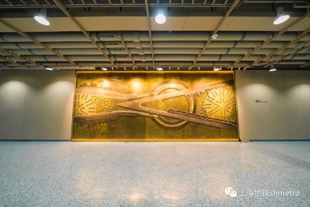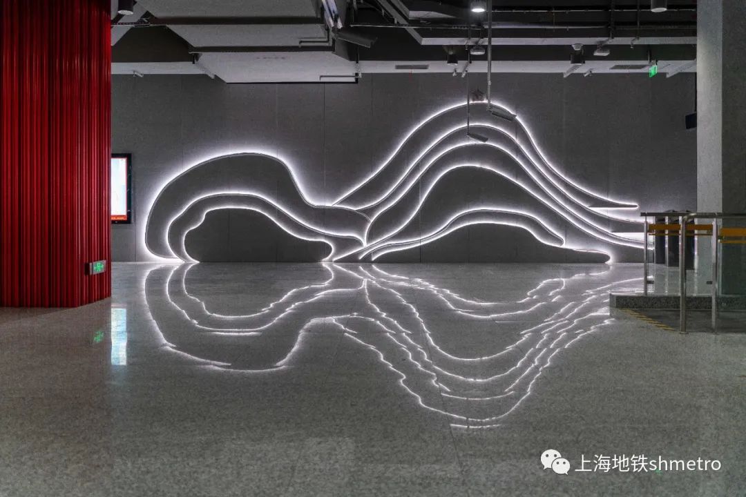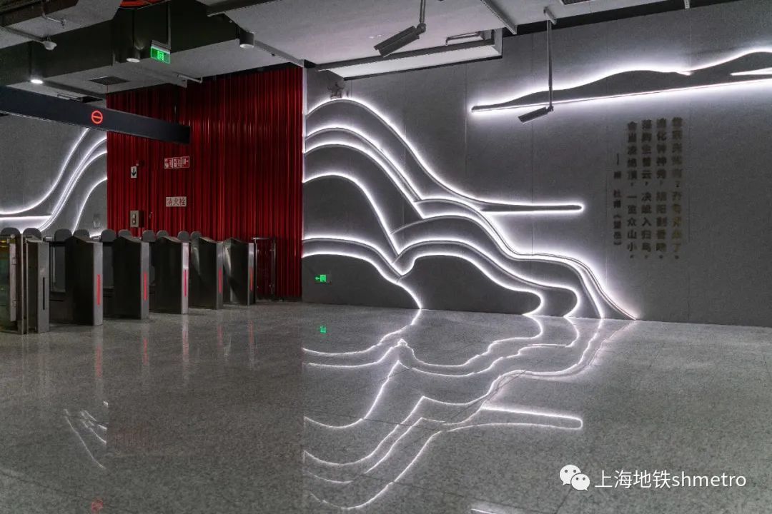 结合周边人文环境及历史底蕴,车站内设置了公共艺术站名墙,使功能与美感相辅相成,在满足交通基本功能的基础上,增强了整线车站亮点空间的视觉美感,让城市特色文化融入城市地下空间,凝练、打造、传递人文地铁理念。同时,选择预制艺术水泥板为材料与车站简约装饰达到异曲同工之妙。