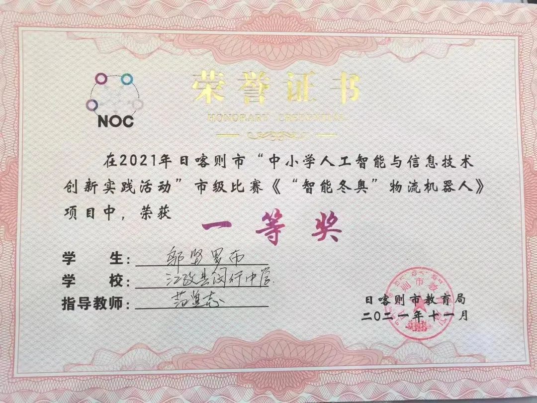 近日,“中小学人工智能与信息技术创新实践活动”在日喀则市举行。江孜县闵行中学学生在“智能冬奥”物流机器人项目中荣获一等奖。这是闵行中学自建校以来获得的第一个科创类比赛一等奖。