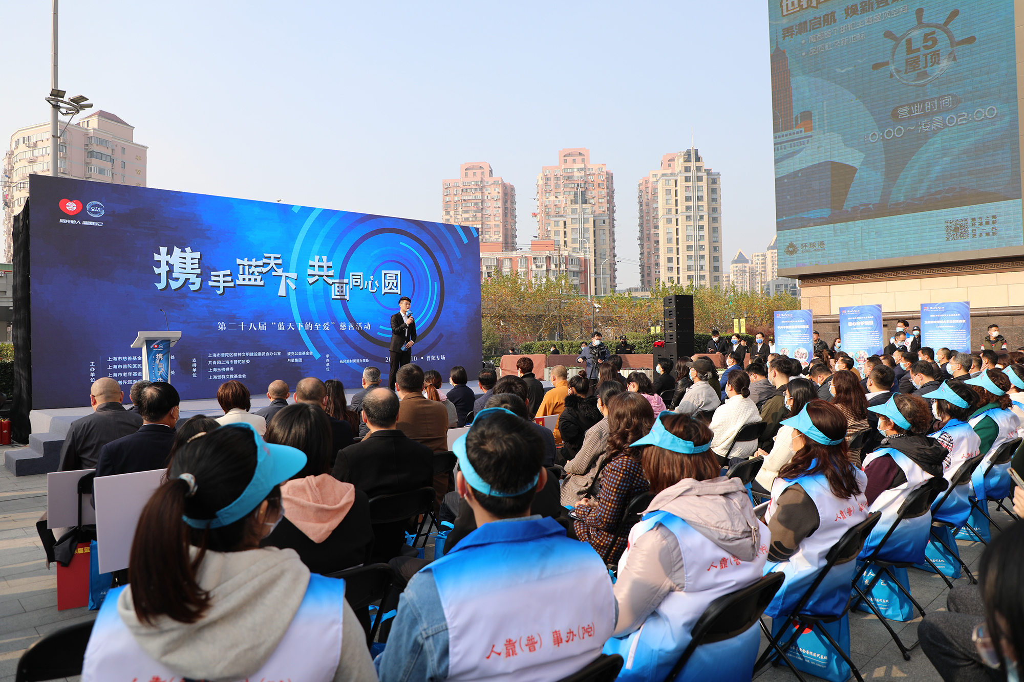12月10日,“携手蓝天下,共画同心圆”第28届“蓝天下的至爱”慈善活动普陀专场开场仪式在环球港举行。华东师范大学党委书记梅兵,普陀区委书记姜冬冬,区委副书记周艳,区领导蒋龙出席活动。中国佛教协会副会长、上海觉群文教基金会理事长、玉佛禅寺方丈觉醒,上海市慈善基金会副理事长吴茵蝶,月星集团董事局主席丁佐宏及区相关委办局、各街道镇有关负责人参加活动。