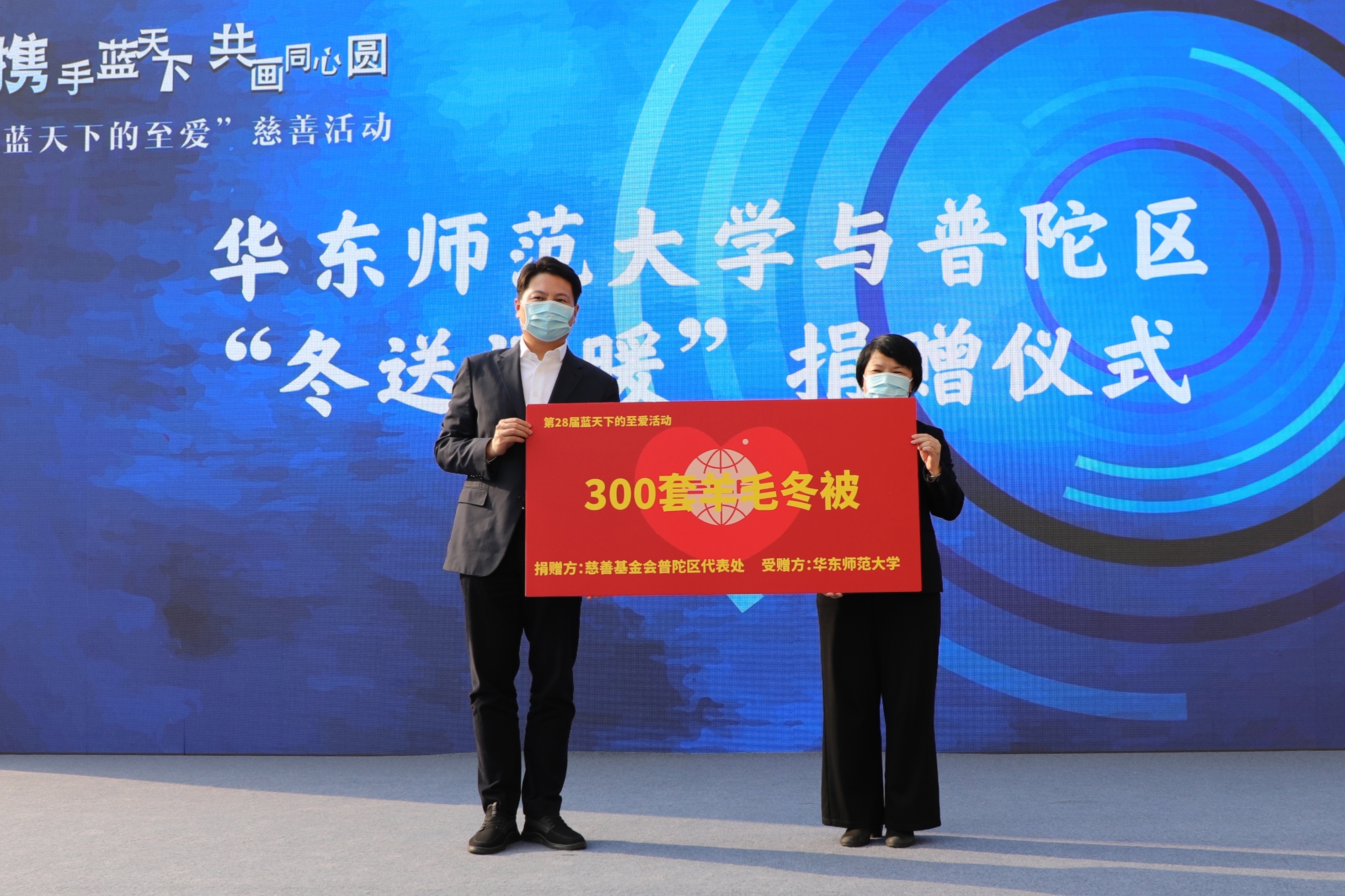 延续多年的公益慈善项目“冬送温暖”,是普陀区“慈善四送”系列公益活动之一。现场举行了华东师范大学与普陀区“冬送温暖”捐赠仪式。