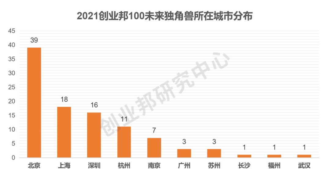 在100家未来独角兽企业中,“北上深杭”四个城市聚集着超过80家未来独角兽企业,其中北京以39家位居首位,其次是上海18家,深圳16家。