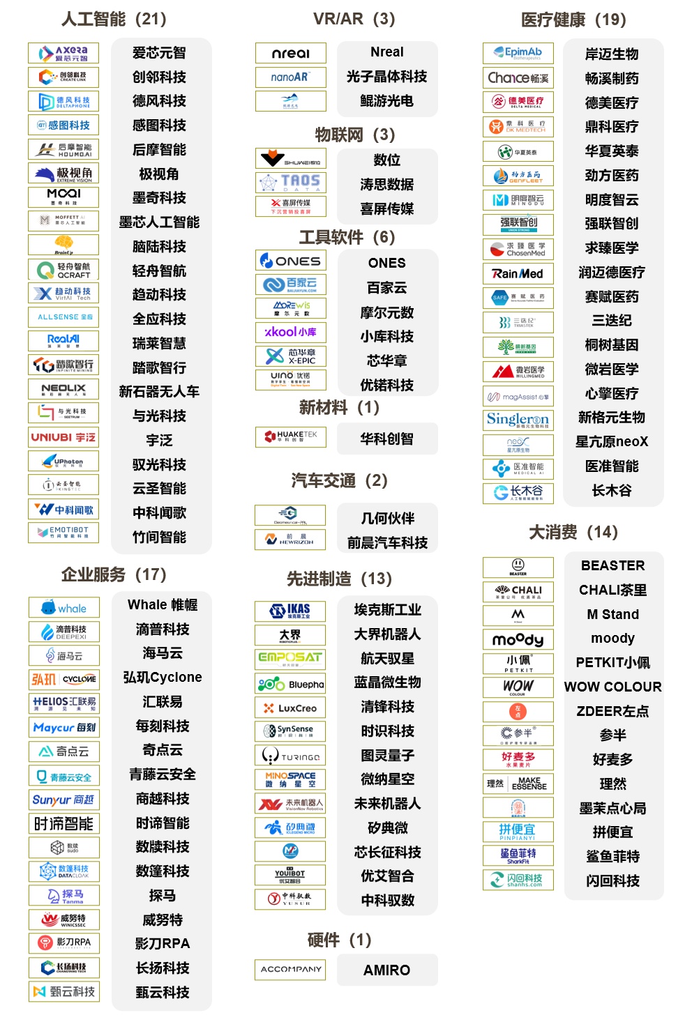 (2)在100家未来独角兽企业中,以智能感知(极视角、驭光科技、宇泛、竹间智能等)、AI芯片(爱芯元智、后摩智能、墨芯人工智能等)、智能机器人(优艾智合、未来机器人等)、隐私计算(数牍科技)、数字医疗(明度智云)、脑机结合(脑陆科技)、量子计算(图灵量子)等前沿科技为代表的创新企业,开始走进未来独角兽的阵营,这些领域的未来独角兽在悉数体现了尖端技术无限切割出的细分场景应用之余,更是展示出人文理性对于先进科学技术的控制能力至关重要。