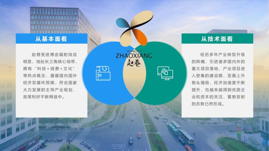 从基本面看赵巷:赵巷受进博会辐射效应明显,地处长三角核心地带,拥有“科技+消费+文化”等热点概念,遵循国内国外经济双循环预期,符合国家大力发展的主导产业规划,政策利好不断释放中。