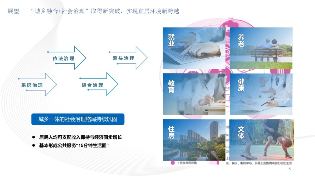 三是“城乡融合+社会治理”取得新突破,实现宜居环境新跨越。赵巷的乡村振兴取得积极成效,城乡融合水平不断提升,完成全域美丽乡村建设。城乡一体的社会治理格局持续巩固,系统治理、依法治理、综合治理、源头治理能力进一步强化,城乡生活环境更加怡人。居民人均可支配收入保持与经济同步增长,基本形成公共服务“15分钟生活圈”,就业、养老、教育、健康、住房、文体等各项民生事业协调发展,以满足人们对美好生活的向往。