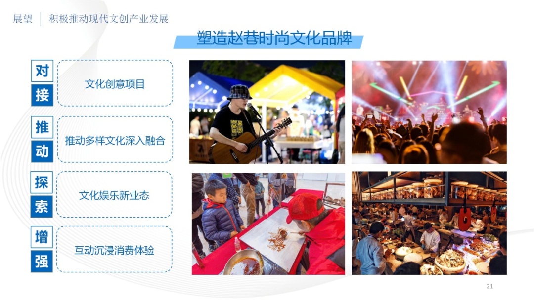 三是现代文创产业。赵巷镇积极对接文化创意项目,推动多样文化深入融合。探索文创集市、夜间市集、小店经济及文化娱乐等业态,增强互动沉浸消费体验,鼓励举办特色主题美食节、音乐节、艺术表演等都市现代文化活动,塑造赵巷时尚文化品牌。