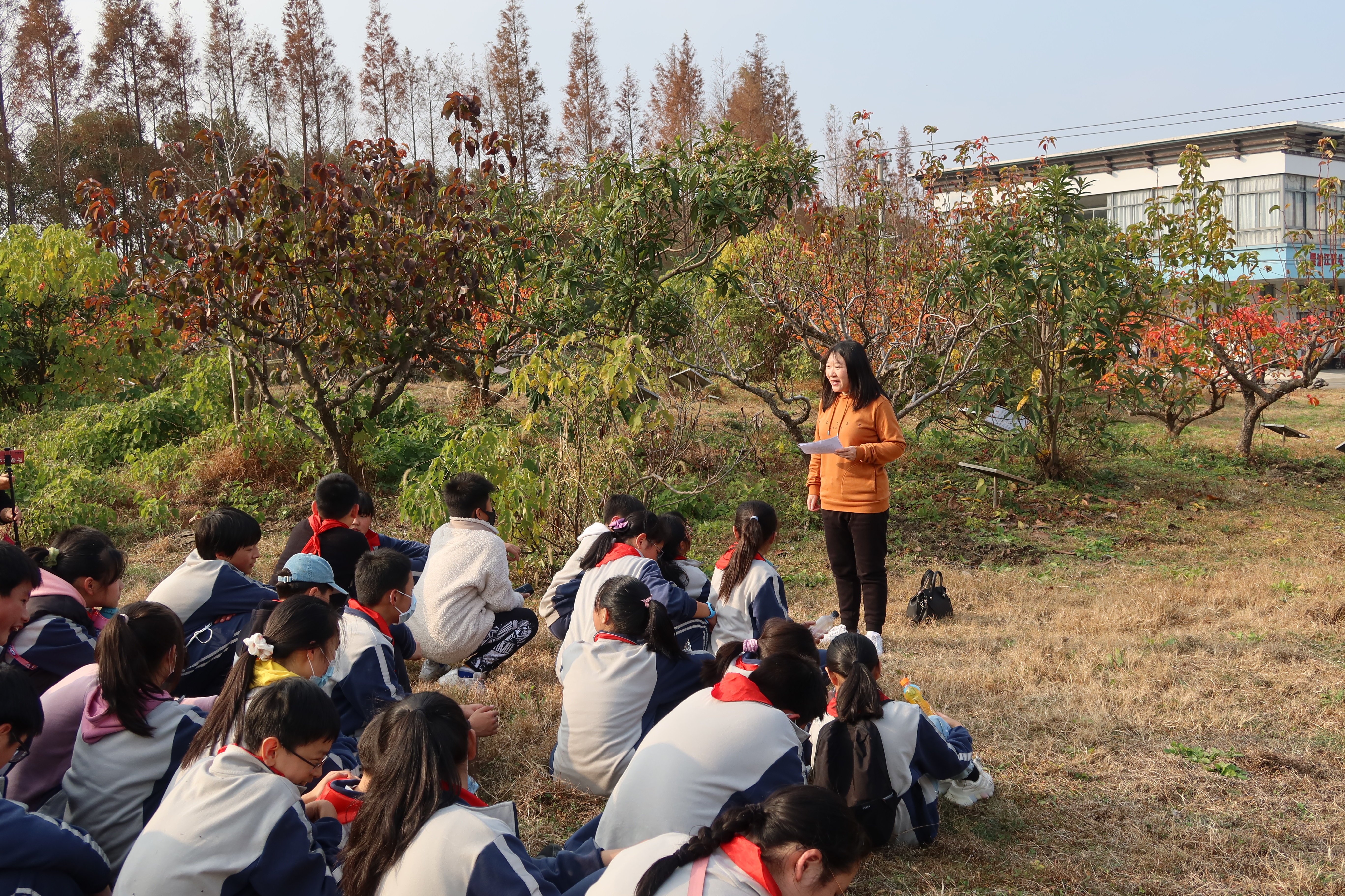 除了劳作,仓桥学校的历史老师张琼还在梨树下为学生们介绍了仓桥水晶梨的历史,退休志愿者老师朱端端则用袁隆平的故事为这次实践课结尾,孩子们和朱端端一起念道:“我要好好吃饭,也要做一粒种子……”