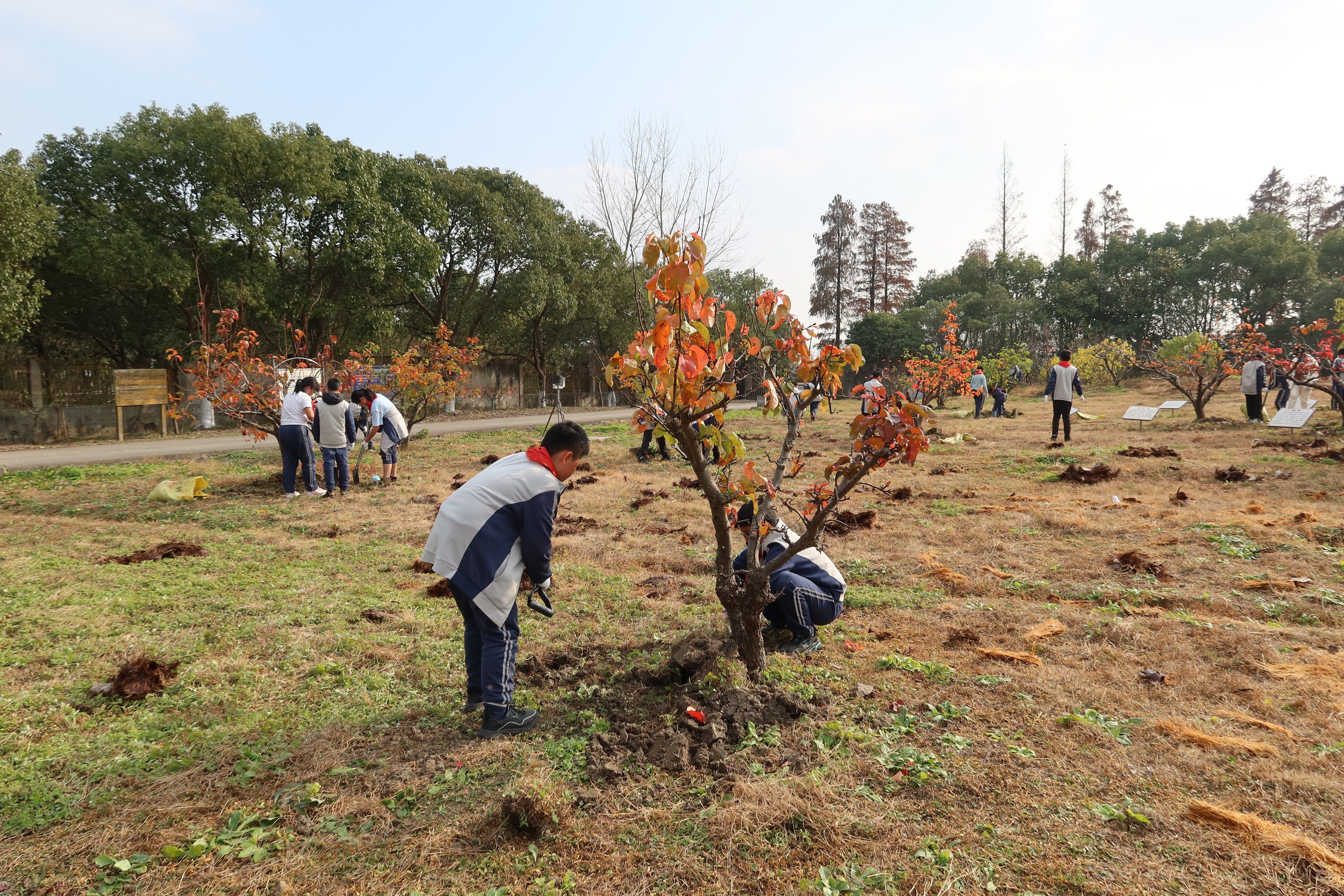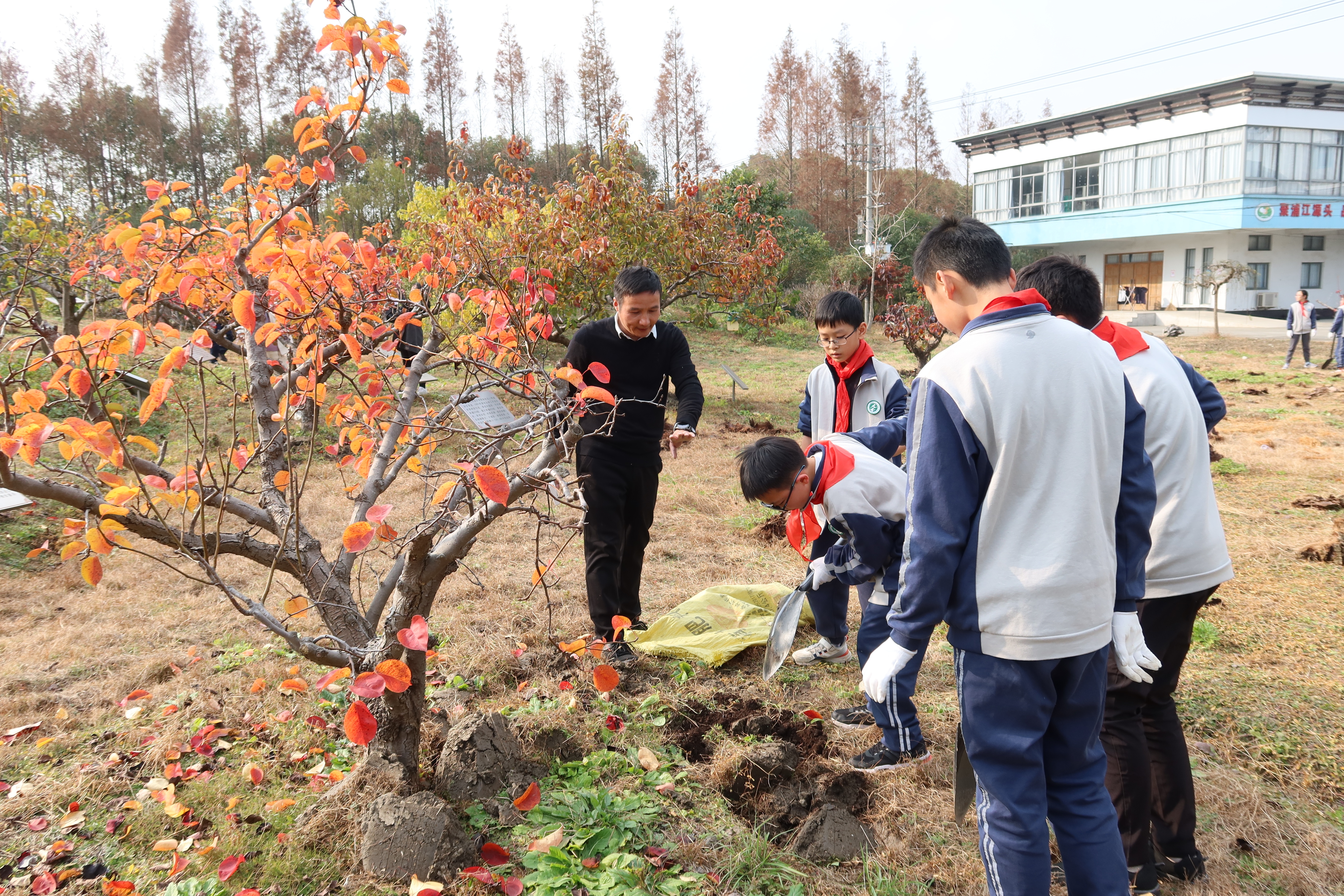 在上海市梨研究所的梨树林,40名六年级学生忙着给梨树施肥。这是12月11日下午,松江区仓桥学校、永丰街道学生社区实践指导站以及上海市梨研究所共同开展的一堂户外农业实践课程。