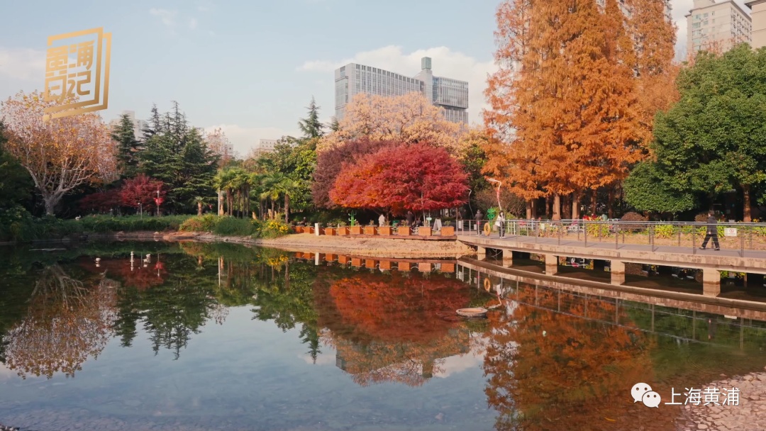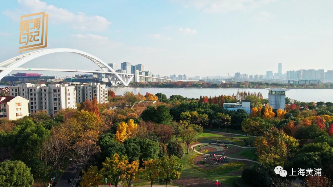 沿着打浦路直走,就看到了位于龙华中路800号的南园滨江绿地,深秋的南园,层林尽染,就好像打翻了调色盘,美不胜收。