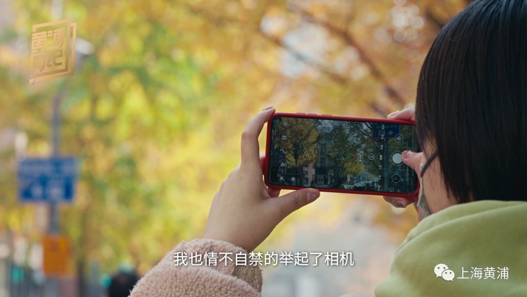 金黄的银杏引得路人经过时,也放慢了脚步,去欣赏并打卡拍照,就连外卖小哥在等餐时,也忍不住拿起手机,记录下银杏纷飞的美景。