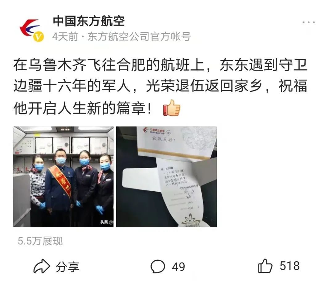 东航头条号共发布23期内容,总流量达45万。其中“东东鉴定:这些“空乘”账号,都是假的!“、“守卫边疆十六年,光荣退伍返家乡”、“早上好,欢迎登机”等内容深受网友喜爱,收获了大量互动与点赞。