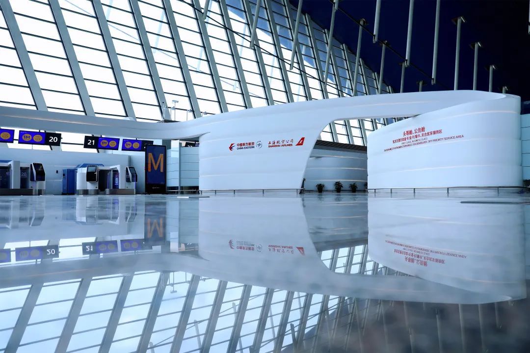 这是新冠肺炎疫情爆发后,东航在枢纽基地新增的首个高端值机区,折射出东航在常态化精准防控的基础上,为服务旅客美好航空出行、助力上海国际航空枢纽建设作出的不懈努力。