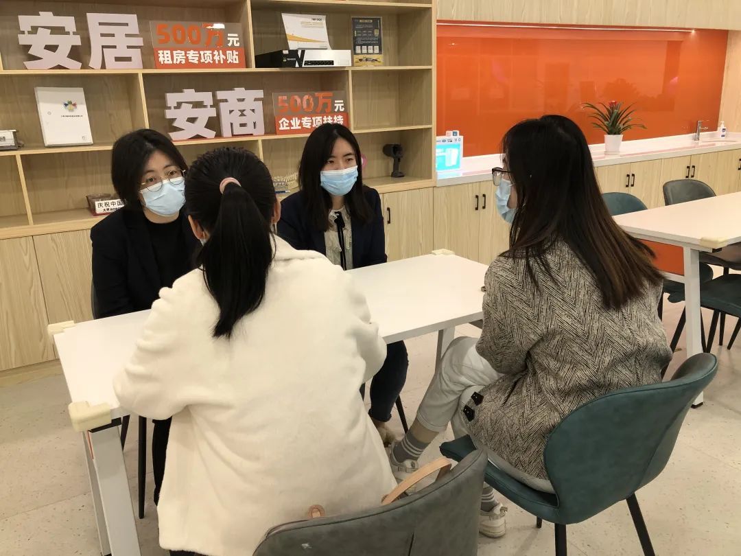 淞南镇围绕科创中心主阵地建设,在党建引领下做实企业服务,在社区党群服务中心为镇域内的科创企业提供共享办公和共享会议室,并与镇投促中心资源融合,由专人在中心开展企业服务。采访当天正值淞南镇社区党群服务中心人才驿站的咨询活动,邀请了区人才服务中心的工作人员为创业企业提供咨询服务,精准服务镇域内企业,提升人才服务“软实力”。