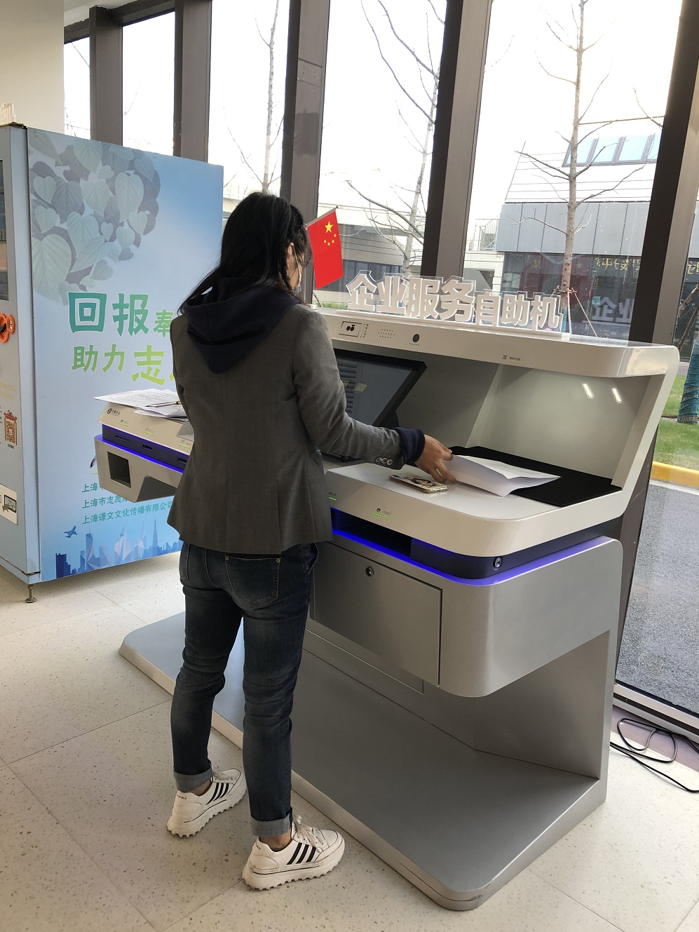 丁女士来到这里,就是通过智能服务终端办理公司营业的经营范围变更,她表示,机器上做很方便,很多材料上传之后,办理速度也会很快。