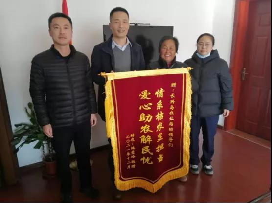 2021年12月6日,橘农施爱珍将一面写着“情系橘农显担当,爱心助农解民忧”的锦旗送到了长兴镇农业综合技术推广服务中心主任陆帅的手中,衷心感谢长兴镇党委、政府在柑橘种植、销售过程中提供的优质、高效服务。