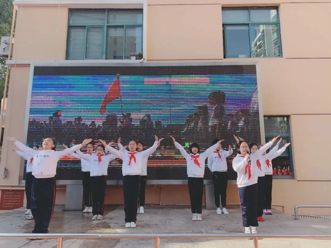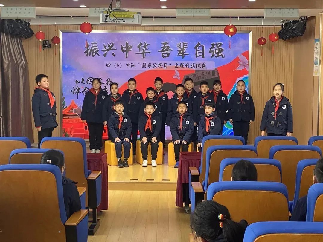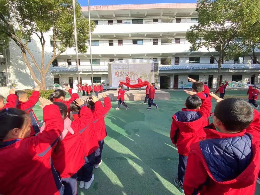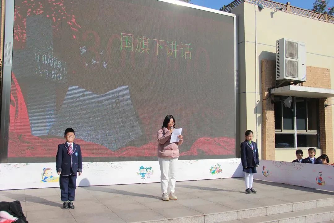 学校举行了“振兴中华,吾辈自强”升旗仪式,以课本剧和朗诵相结合的方式,演绎了周恩来回答“为中华之崛起而读书”的那一堂修身课。当天中午,孩子们在学校广播中说道,“我们是中国人,我们爱自己的祖国!我们为祖国把握好每一天,做好每一件事。做自尊自强自立的——中国人!”