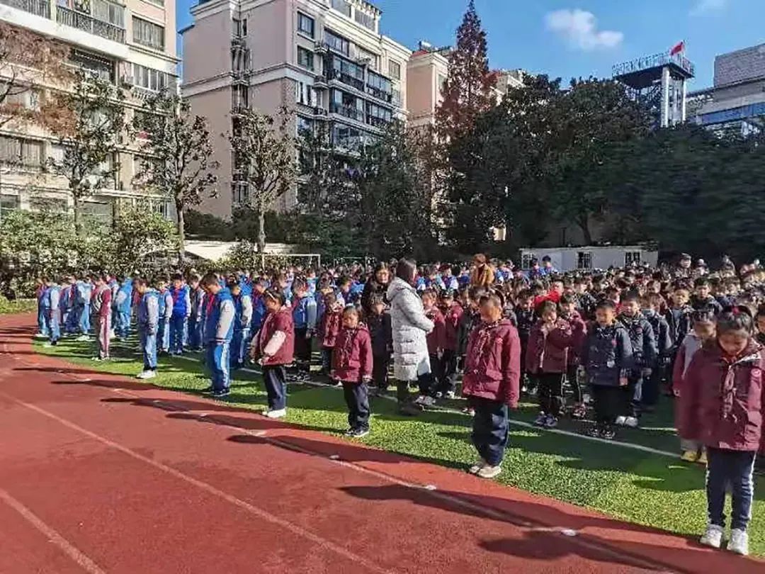翔殷路小学开展了“牢记历史,勿忘国耻”主题升旗仪式,全体师生向死难的同胞默哀。