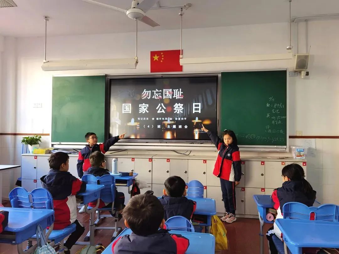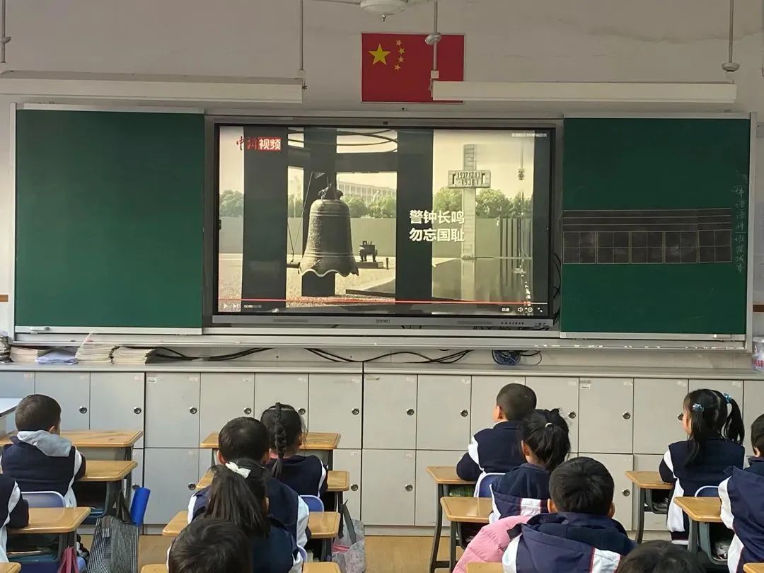 同济小学的孩子们在班团队课上,通过观看视频学习和懂得国家公祭日的含义。