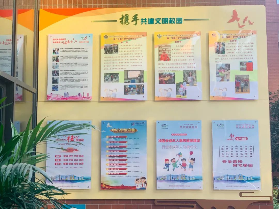 学校由党政领导牵头统筹,上下一心,齐抓共创。银杏金黄一地灿烂,校园环境整洁优美,应知应会天天操练,创城问答人人过关,你我同创全国文明城区,大家共筑普陀美丽家园。