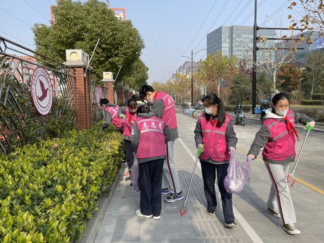 学校将普陀区“创建全国文明城区”工作与学校劳动教育相结合,培养学生的劳动意识,师生利用课余时间在校园及周边开展志愿行动,维护校园整洁的同时承担周边区域的清洁责任。我为“创城”尽己力,文明从你我做起!