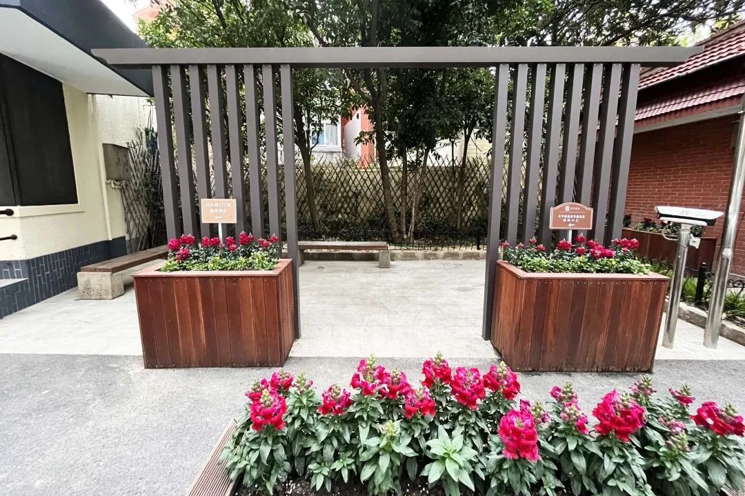 墙篱元素附加爬藤植物种植,增加绿化覆盖率,休闲座椅城市家具设置,为居民增加了“春赏花、夏乘凉、秋沐霞、冬暖阳”的交流互动空间。