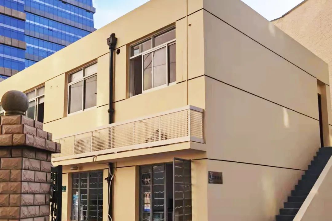 物业用房和小区围墙的墙面贴面脱落,铁艺栏杆锈蚀严重。通过整体统一墙面元素,重新粉刷,使之与风貌区整体色调相协调,让老旧用房焕发出新生机。