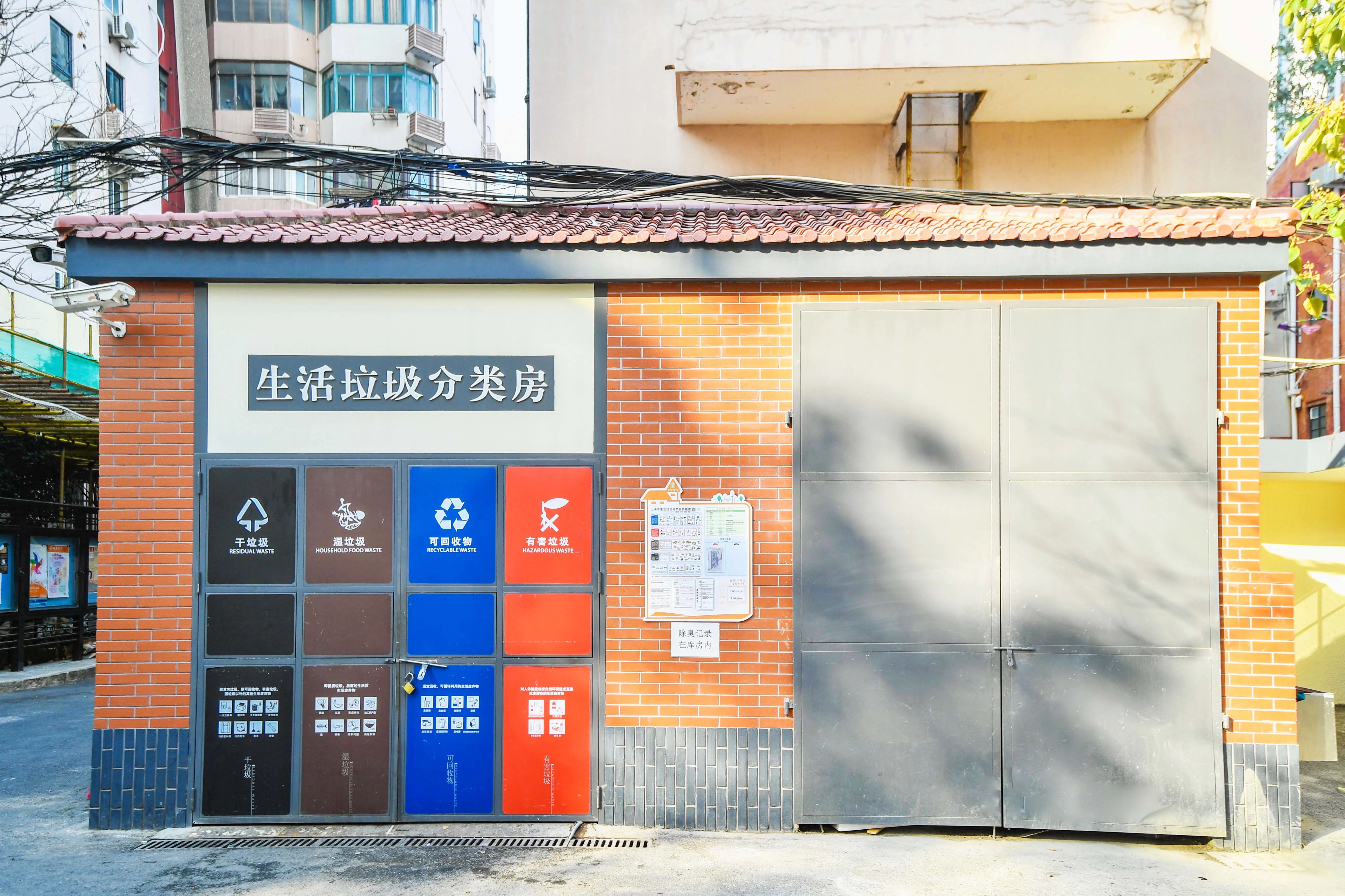 贯彻生活垃圾分类条例,完善生活垃圾分类投放设施,增加除味和便民洗手设施,修缮美化库房外墙;增设“两网融合”回收服务点,提升生活垃圾减量化资源化水平。