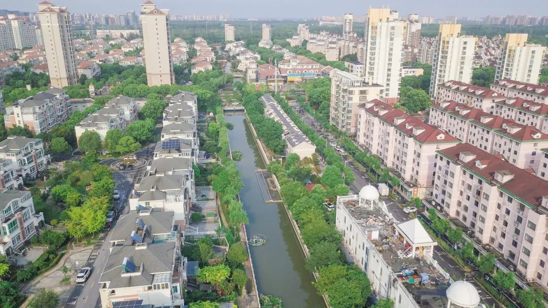 韩村港,全长1638米,河口宽14米,水面积21294平方米,属镇级河道。韩村港西起南横泾,东至奉浦河,沿线有聚贤煌都、景怡佳苑、商宝公寓、奉浦二村4个小区,整治之前为住建部挂牌督办的重污染黑臭河道之一。