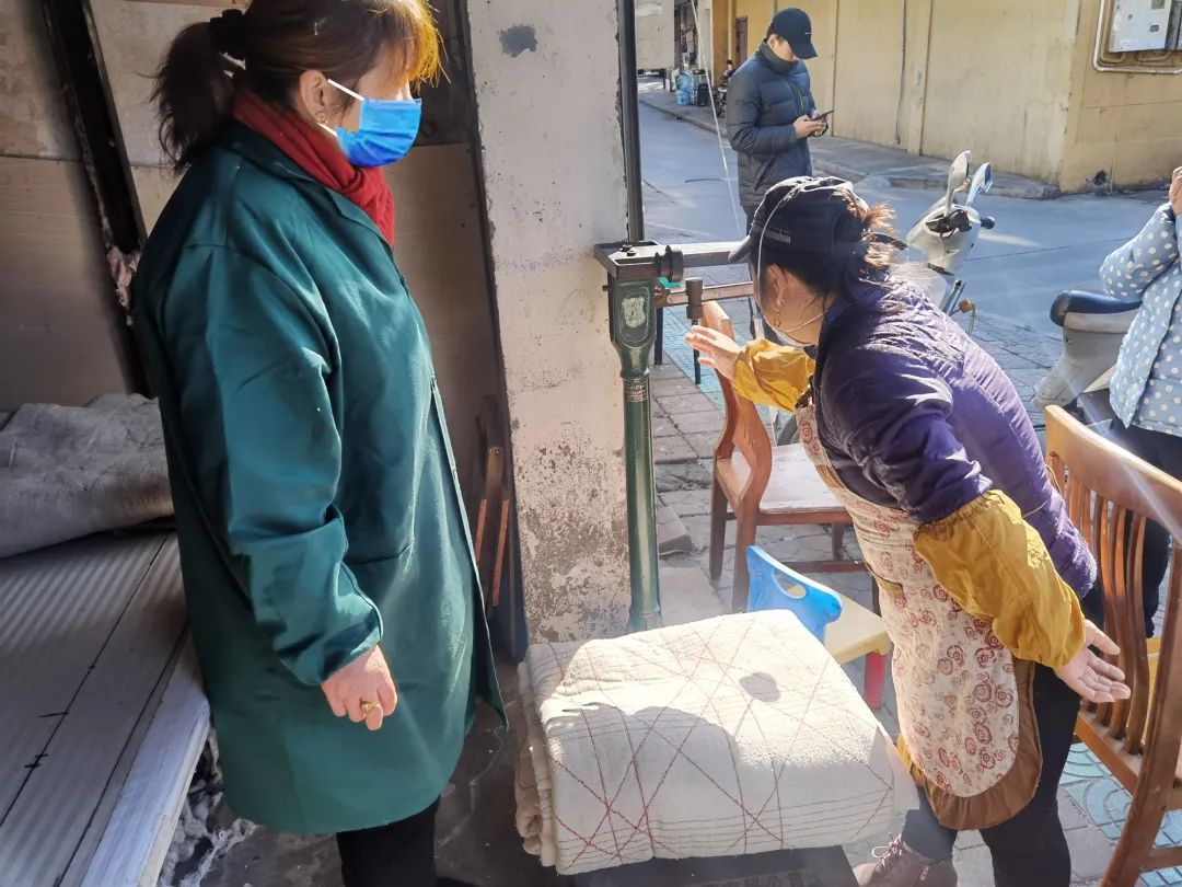 一早,市民黄阿姨抱着家里的被子过来重新弹弹。黄阿姨说,进入大雪节气后,天气愈加寒冷。家里的棉被时间长了,有点结块了,不够松软。拿过来重新弹一下,再加点棉花,弹个厚被子冬天就不怕冷了。